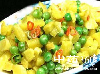 豌豆:豌豆中富含优质蛋白质、胡萝卜素,可以提高机体的抗病能力和康复能力,增强机体免疫功能,防止人体致癌物质的合成,降低人体癌症的发病率。豌豆中还含有较为丰富的膳食纤维,能促进大肠蠕动,保持大便能畅,起到清洁大肠,防止便秘,抗癌防癌的作用。豌豆与一般蔬菜有所不同,所含的止杈酸、赤霉素和植物凝素等物质,还具有抗菌消炎,增强新陈代谢的功能。