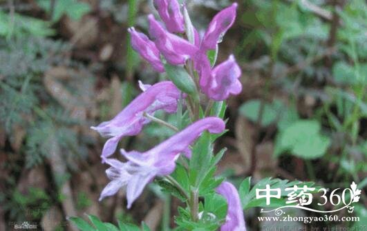【原形态】东紫堇 多年生草本,高10-25cm,无毛。地下茎细长。茎直立,通常不分枝,基部具膜质鳞片2枚。叶3-4枚;叶柄细长,基部成鞘抱茎;叶片二回三出全裂,末回裂片狭披针形至宽条形,上面绿色,下面淡蓝色。总状花序项生,密集花6-12朵;苞片倒印形至椭圆形,先端有时全裂;花梗与苞片等长或略短;花冠淡紫红色,外轮上辩先端凹陷,下瓣基部无突起;子房条形,柱头2裂。蒴果串珠状。种子黑色,有光泽。花期4-5月,果期5-6月。