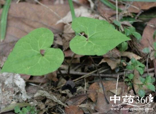 【原形态】短尾细辛 多年生草本。根茎横走,粗约4mm,节间甚长。地上茎斜升。叶对生;叶柄长4-18cm;芽胞叶阔卵形;叶片心形,长3-7cm,宽4-10cm,先端渐尖或长渐尖,基部心形,上面深绿色,散生柔毛,脉上较密,下面仅脉上有毛,叶缘两侧在中部常向内弯。花被在子房以上合生成直径约1cm的短管,裂片三角状卵形,被长柔毛,先端常具短尖尾,长3-4mm,通常向内弯曲;雄蕊长于花柱,花丝比花药稍长,药隔伸出成尖舌状;子房下位,近球状,被长柔毛,花柱先端辐射状6裂。蒴果肉质,直径约1.5cm。花期4-5月。