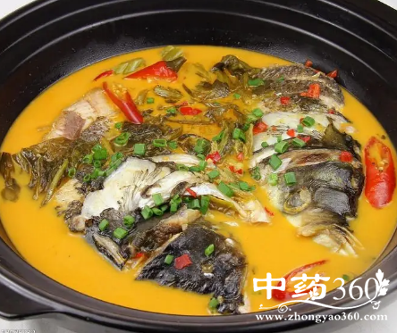 1.鲤鱼:加生姜、糯米一起炖,有温胃的作用;