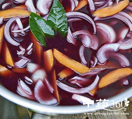 将洋葱洗净,去掉表面茶色外皮,切成八等份约半月形。1瓶普通干红葡萄酒配三个葱。将洋葱装入玻璃瓶内,加入干红葡萄酒,(将剥下来的外皮也一起加入效果更好)。将玻璃瓶盖好密封,在阴凉地方放置约2至8日(泡时间越长,怪味道越重)。