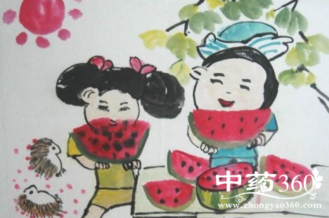 2 解暑止渴 西瓜性寒,其中水分含量多,特别适合炎热夏天解暑食用,另外,对于急性热病发烧、口渴汗多等不适还有一定的改善作用。 润肠通便 西瓜性寒,并且含有大量的水分,具有一定润滑肠道的作用,可以促进肠道蠕动,减少粪便在体内的停留时间,预防便秘,因此板栗和西瓜一起食用有一定润肠通便的作用。 美容养颜 板栗和西瓜中都含有丰富的维生素C、胡萝卜素成分,经常适量食用,可以美白滋润肌肤,延缓皮肤衰老,改善皮肤状况,抚平肌肤,使皮肤红润有光泽。 利尿 西瓜所含的糖和盐能利尿并消除肾脏炎症,蛋白酶能把不溶性蛋白质转化为可溶的蛋白质,增加肾炎病人的营养。