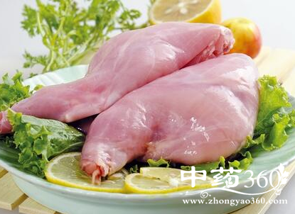 食疗作用兔肉味甘、性凉,入肝、脾、大肠经。具有补中益气、凉血解毒、清热止渴等作用。可治热气湿痹、止渴健脾、凉血、解热毒、利大肠。文献选录医圣张仲景的《伤寒论》中开列的“猪肤方”中指出猪皮有“和血脉,润肌肤”的作用,历代沿用不衰。