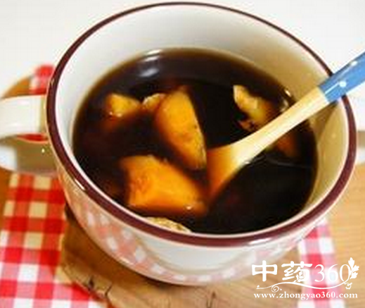 材料:地瓜60g、黑糖1大匙、姜30g、开水1000cc.。
