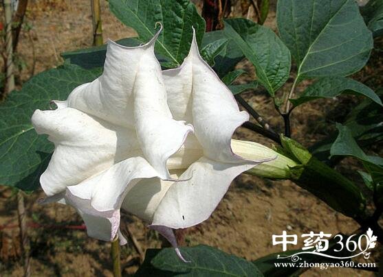 【来源】 洋金花:为茹科植物白花曼陀罗Datura metel L.或毛曼陀罗Datura innoxia Mill.的干燥花朵。前者称南洋金花,后者称北洋金花。