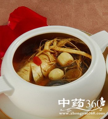 6、炖煮食品或小菜:不喜爱参之苦味者,亦可伴以瘦肉、鸡、鱼等烹炖,除滋补强身外,更美味可口。参之精华可被肉类吸收,显有人参之甘香及肉的香甜味,为高级保养佳肴。