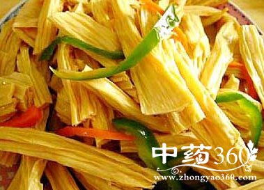 ③煮沸后将木耳、香菇丝放入锅内,爆15分钟,调味后着薄芡,放上葱丝,淋上麻油即成。可常食用,此菜具有补脾益气之作用。