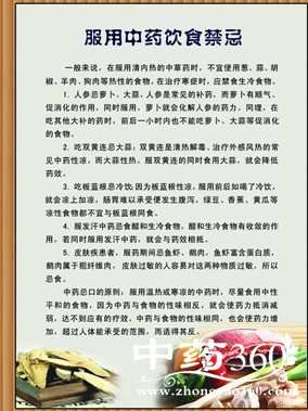 一般来说,在服用清内热的中草药时,不宜食用葱、蒜、胡椒、羊肉、狗肉等热性的食物;在治疗寒症时,应禁食生冷食物;服用含有地黄、何首乌的药物时,忌服葱、蒜、萝卜;服用含薄荷的中药时,不应吃鳖肉;茯苓不宜与醋同吃;吃鳖甲时,不宜配苋菜;服用泻下剂如大承气汤、麻仁丸时,不宜食用油腻及不易消化的食物;驱虫类中药也应避免油腻食物,并以空腹药为宜。在患病服药期间,凡是属于生冷、黏腻等不易消化的食物如辣椒等,都应避免食用。以面是几种与常用中药相忌的食物。应用时要注意: