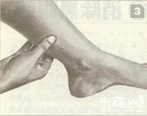 3.拇指按揉三阴交穴3-5分钟,以感觉胀痛为宜。按摩此穴可有效调节人体消化系统、泌尿系统和生殖系统的功能,提升气血,消除黑眼圈。