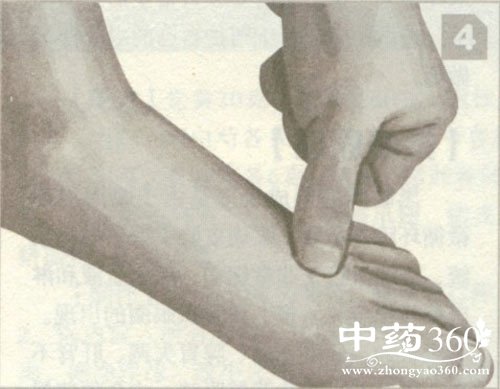 2.拇指点按足三里穴1-3分钟,以感觉酸胀为宜。按摩足三里穴能疏通经络、消积化滞、健脾和胃、补气养血、强壮身体,有效消除黑眼圈。