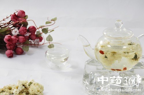 菊花茶淡雅素洁。菊花茶对口干、火旺、目涩或由风、寒、湿引起的肢体疼痛、麻木的疾病均有一定的疗效。现代科学已能提取菊花中的有效成分,制成菊花晶、菊花可乐等饮品。菊花茶是老少皆宜的茶饮品。人们常取菊花20克代茶饮,或将菊花30克加滚开水沏泡片刻后,加入少量蜂蜜,温服, 有美容、明目的功效。亦可取菊花10克,桑叶5克,枇杷叶5克,制成粗末,用沸水冲泡,代茶饮用,适用于因秋令燥气伤犯肺卫,而见发热、微恶风寒、咽干唇燥、咳嗽少痰等病症者服用。同时,本方对流感、流脑、乙脑、腮腺炎、水痘等有较好的预防作用。