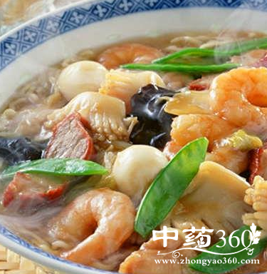 【评析】虾有淡水虾、海虾之分。淡水虾(如青虾),性味甘温,功能补肾壮阳,通乳;海虾,性味甘咸温,亦有温肾壮阳,兴奋性机能作用。猪肉助湿热而动火,故二者相配,耗人阴精,元·朱震亨云:“猪肉补气,世俗以为补阴,误矣!唯补阳尔;今之虚损者,不在阳而在阴,以肉补阴是以火济水,盖肉性入胃,便作湿热。”阴虚火旺,忌猪肉与虾配食。