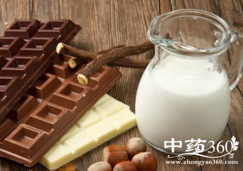有人以为,既然牛奶属高蛋白食品,巧克力又是能源食品,二者同时吃一定大有益处。事实并非如此。液体的牛奶加上巧克力会使牛奶中的钙与巧克力中的草酸产生 化学反应,生成“草酸钙”。于是,本来具有营养价值的钙,变成了对人体有害的物质,从而导致缺钙、腹泻、少年儿童发育推迟、毛发干枯、易骨折以及增加尿路 结石的发病率等。