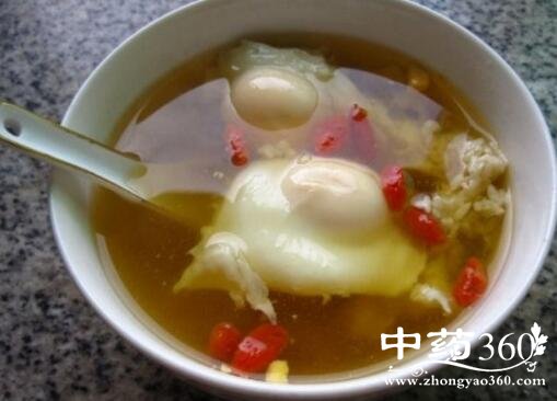 枸杞15g,鸡蛋2枚。先放枸杞与水煮汤,汤成加入搅拌鸡蛋,再烧开即成。