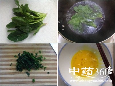菠菜 3棵,蛋1个,水 10克,生粉5克,油少量