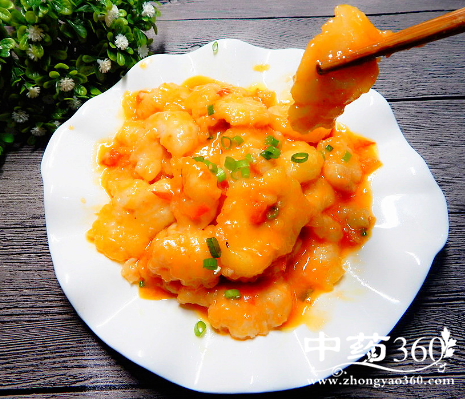 1.鱼肉切成小块,加入绍兴酒、盐、胡椒粉和蛋白混合抓匀腌制10分钟左右