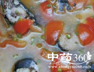 鲅鱼:鲅鱼其肉质细腻、味道鲜美、营养丰富,含丰富蛋白质、维生素A、矿物质等营养元素。鲅鱼有补气、平咳作用,对体弱咳喘有一定疗效;鲅鱼还具有提神和防衰老等食疗功能,常食对治疗贫血、早衰、营养不良、产后虚弱和神经衰弱等症会有一定辅助疗效。番茄:西红柿现在已是不少人餐桌上的美味。西红柿富含丰富的胡萝卜素、B族维生素和维C,其中的维生素P含量是蔬菜之冠,对心血管具有保护作用,可减少心脏病的发作。丰富的番茄红素能清除自由基,预防前列腺癌;尼克酸可维持胃液的正常分泌,促进红血球的形成,利于保持血管壁的弹性和保护皮肤。西红柿多汁,可以利尿,肾炎病人也宜食用。同时多吃番茄还具有抗衰老作用,能使皮肤保持白皙。