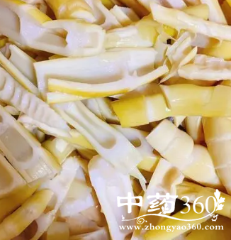 1.将剥去皮的野生小竹笋放入烧开水的锅中汆熟