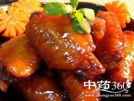 鸡翅含有多量可强健血管及皮肤的成胶原及弹性蛋白等,对于血管、皮肤及内脏颇具效果。翅膀内所含大量的维生素A,远超过青椒。对视力、生长、上皮组织及骨骼的发育、精子的生成和胎儿的生长发育都是必需的。