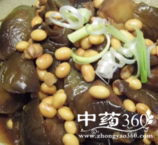 材料:茄子500克、大豆100克