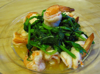 河虾:虾营养丰富,其肉质松软,易消化,对身体虚弱以及病后需要调养的人是极好的食物;虾中含有丰富的镁,能很好的保护心血管系统,它可减少血液中胆固醇含量,防止动脉硬化,同时还能扩张冠状动脉,有利于预防高血压及心肌梗死;虾肉还有补肾壮阳,通乳抗毒、养血固精、化瘀解毒、益气滋阳、通络止痛、开胃化痰等功效。豌豆苗:豌豆苗含钙质、B族维生素、维生素C和胡萝卜素,有利尿、止泻、消肿、止痛和助消化等作用。豌豆苗能治疗晒黑的肌肤,使肌肤清爽不油腻。豌豆苗含有胡萝卜素、抗坏血酸、核黄素等营养物质。