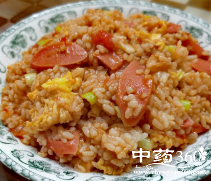 主料西红柿1个火腿肠2个鸡蛋2个米饭2碗辅料葱适量姜日记蒜适量番茄酱2匙调料盐适量生抽适量蚝油适量白糖适量酸咸口味炒工艺十分钟耗时简单难度