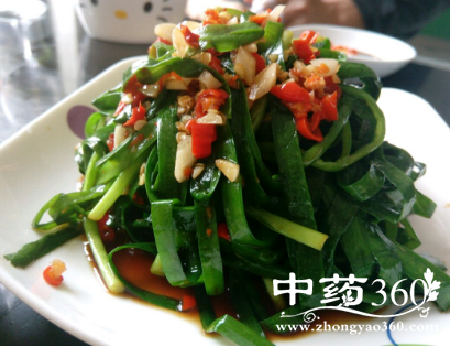 韭菜,味甘辛,性温、无毒。酒菜对人体有保温作用,还有散瘀、补肝肾、暖腰膝、壮阳固精的作用,也适合常常手脚冰冷、下腹冷、腰酸或月经迟来的女性朋友。