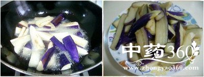 2、茄子先放入油中炸软