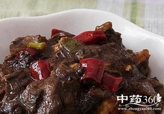 3)加入泡蘑菇的水,盖盖焖煮至汤汁浓稠,撒少许鸡精即可,不要放盐,黄豆酱很咸了!