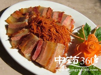 咸肉:咸肉中磷、钾、钠的含量丰富,还含有脂肪、蛋白质等元素。咸肉具有开胃祛寒、消食等功效。腌制食品中有较多量的硝酸盐和亚硝酸盐,且不可过量食用。