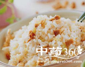 米饭(蒸):米饭的主要成分是碳水化合物,米饭中的蛋白质主要是米精蛋白,氨基酸的组成比较完全,人体容易消化吸收;大米可提供丰富B族维生素;大米具有有补中益气、健脾养胃、益精强志、和五脏、通血脉、聪耳明目、止烦、止渴、止泻的功效。猪里脊肉:猪肉含有丰富的优质蛋白质和必需的脂肪酸,并提供血红素(有机铁)和促进铁吸收的半胱氨酸,能改善缺铁性贫血;具有补肾养血,滋阴润燥的功效;猪里脊肉含有丰富的优质蛋白,脂肪、胆固醇含量相对较少,一般人群都可食用。