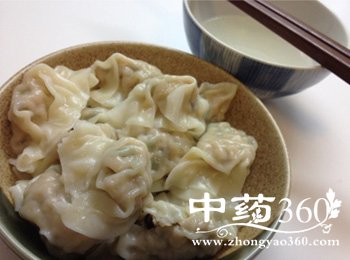 4.擀好的面皮中包入馅,捏好,包成饺子,以常法煮熟食之。