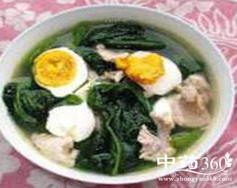 3. 煮熟后放入潺菜和咸蛋,煮熟后调入盐即可