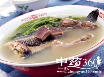 鲤鱼:鲤鱼含丰富优质蛋白,人体消化吸收率可达96%,并能供给人体必需的氨基酸、矿物质、维生素A和维生素D;鲤鱼的脂肪多为不饱和脂肪酸,能很好的降低胆固醇,可以防治动脉硬化、冠心病,因此,多吃鱼可以健康长寿。鲤鱼味甘、性平,具有滋补健胃、利水消肿、通乳、清热解毒、止号嗽下气之功效,对各种水肿、浮肿、腹胀、少尿、黄疸、乳汁不通皆有益。木耳菜:木耳菜的营养素含量极其丰富,尤其钙、铁等元素含量甚高,其中更是富含维A、维C和B族维生素等。而且热量低、脂肪少,经常食用有降血压、益肝、清热凉血、利尿、防止便秘等功效,极适宜老年人食用。木耳菜的钙含量很高,且草酸含量极低,是补钙的优选经济菜。同时木耳菜菜叶中富含一种黏液,对抗癌防癌有很好的作用。猪肉(肥瘦):猪肉含有丰富的优质蛋白质和必需的脂肪酸,并提供血红素(有机铁)和促进铁吸收的半胱氨酸,能改善缺铁性贫血;具有补肾养血,滋阴润燥的功效;但由于猪肉中胆固醇含量偏高,故肥胖人群及血脂较高者不宜多食。蜜枣:枣含有维生素A、C、E、P,生物素,胡萝卜素磷、钾、镁等矿物质,叶酸,泛酸,烟酸等。它有提高人体免疫力,防治骨质疏松和贫血,软化血管,安心宁神等作用。中老年人更年期骨质疏松、青少年生长发育高峰期缺钙、女性易贫血缺铁等,食用枣类食品都会有很好的食疗效果,病后体虚的人食用枣类也有很好的滋补作用。红枣适宜慢性肝炎,肝硬化之人服食,也可减少其他药物对肝脏的损害。红枣中含环磷酸腺甙,可扩张血管,增强心肌收缩力,改善心肌营养,对防治心血管疾病有一定好处。