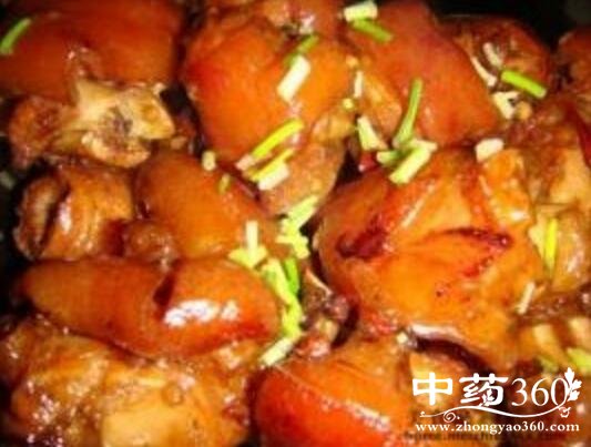 1,将猪蹄斩成块,洗净,放入高压锅,再加入料酒,葱白,姜片和能淹没原料的水;