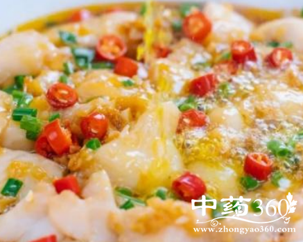2、将浸泡过的龙脷鱼沥水,送入蒸柜大火蒸6分钟后,取出装入盛器。