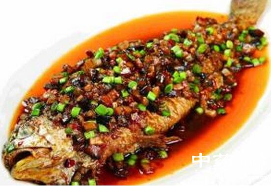 4.最后可以将做好的豉椒酱汁浇在黄花鱼身上,或者将鱼再次下锅烩一下即可