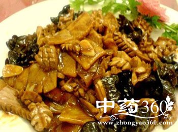 大黄鱼:黄鱼含有丰富的蛋白质、矿物质和维生素,具有健脾开胃、安神止痢、益气填精之功效,对贫血、体质虚弱、中老年人、失眠、头晕、食欲不振及妇女产后体虚有良好疗效;黄鱼含有丰富的微量元素硒,能清除人体代谢产生的自由基,能延缓衰老,防治各种癌症。豌豆:豌豆中富含优质蛋白质、胡萝卜素,可以提高机体的抗病能力和康复能力,增强机体免疫功能,防止人体致癌物质的合成,降低人体癌症的发病率。豌豆中还含有较为丰富的膳食纤维,能促进大肠蠕动,保持大便能畅,起到清洁大肠,防止便秘,抗癌防癌的作用。豌豆与一般蔬菜有所不同,所含的止杈酸、赤霉素和植物凝素等物质,还具有抗菌消炎,增强新陈代谢的功能。冬笋:冬笋是一种富有营养价值并具有医药功能的美味食品,质嫩味鲜、清脆爽口,含有蛋白质和多种氨基酸、维生素,以及钙、磷、铁等微量元素以及丰富的纤维素。能促进肠道蠕动,既有助于消化,有能预防便秘和结肠癌的发生。冬笋是一种高蛋白、低淀粉食品,对肥胖症、冠心病、高血压、糖尿病和动脉硬化等患者有一定的食疗作用。它所含的多糖物质,还具有一定的抗癌作用。但是冬笋含有较多草酸钙,儿童、患尿道结石、肾炎的人不宜多食。