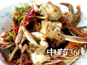海蟹:螃蟹含有丰富的蛋白质及微量元素,对身体有很好的滋补作用。螃蟹有清热解毒、补骨添髓、养筋活血,利肢节,滋肝阴,充胃液之功效,对于淤血、黄疸、腰腿酸痛和风湿性关节炎等有一定的食疗效果。螃蟹具有抗结核作用,对结核病的康复大有补益。肥膘肉:肥膘肉中含有多种脂肪酸,能提供极高的热量,并且含有蛋白质、B族维生素、维生素E、维生素A、钙、铁、磷、硒等营养元素;但肥猪肉中胆固醇、脂肪含量都很高,故不宜多食,而肥胖人群及血脂较高者则不宜食用。鸡蛋清:鸡蛋清富含蛋白质和人体必需的8种氨基酸和少量醋酸,可以增强皮肤的润滑作用,保护皮肤的微酸性,以防细菌感染;此外,鸡蛋清还具有清热解毒作用;我国中医还认为,鸡蛋清性微寒而气清,能易经补气,润肺利咽,清热解毒,有助于延缓衰老。红辣椒:辣椒是老百姓餐桌上最常见的一种原料,其营养丰富,口味独特,就餐时能增加饭量,多食可增强体力,改善怕冷、冻伤、血管性头痛等症状。同时辣椒中含有一种物殊物质,能加速新陈代谢,促进荷尔蒙分泌,保健皮肤。富含的维C,可以控制心脏病及冠状动脉硬化,降低胆固醇。含有较多抗氧化物质,可预防癌症及其他慢性疾病。可以使呼吸道畅通,用以治疗咳嗽、感冒。辣椒还能杀抑胃腹内的寄生虫。