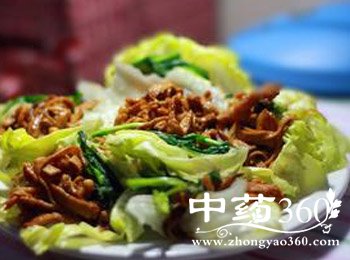 生菜:生菜中膳食纤维和维生素C较白菜多,有消除多余脂肪的作用,故又叫减肥生菜。因其茎叶中含有莴苣素,故味微苦,具有镇痛催眠、降低胆固醇、辅助治疗神经衰弱等功效。生菜中含有甘露醇,有利尿和促进血液循环的作用。生菜中还含有一种“干扰素诱生剂”,可刺激人体正常细胞产生干扰素,从而产生一种“抗病毒蛋白”抑制病毒。猪肉(肥瘦):猪肉含有丰富的优质蛋白质和必需的脂肪酸,并提供血红素(有机铁)和促进铁吸收的半胱氨酸,能改善缺铁性贫血;具有补肾养血,滋阴润燥的功效;但由于猪肉中胆固醇含量偏高,故肥胖人群及血脂较高者不宜多食。火腿:火腿色泽鲜艳,红白分明,瘦肉香咸带甜,肥肉香而不腻,美味可口,各种营养成分易被人体所吸收,具有养胃生津、益肾壮阳、固骨髓、健足力、愈创口等作用。胡萝卜:胡萝卜能提供丰富的维A,可促进机体正常生长繁殖、维持上皮组织、防止呼吸道感染与保持视力正常、治疗夜盲症和眼干燥症等功能。同时还能增强人体免疫力和抗癌的作用,并可减轻癌症病人的化疗反应,对多种脏器有保护作用。妇女进食胡萝卜可以降低卵巢癌的发病率。另外胡萝卜内所含的琥珀酸钾,有助于防止血管硬化,降低胆固醇,对防治高血压有一定效果。胡萝卜素可清除致人衰老的自由基,所含的B族维生素和维C等也有润皮肤、抗衰老的作用。另外它的芳香气味是挥发油造成的,能增进消化,并有杀菌作用。咸肉:咸肉中磷、钾、钠的含量丰富,还含有脂肪、蛋白质等元素。咸肉具有开胃祛寒、消食等功效。腌制食品中有较多量的硝酸盐和亚硝酸盐,且不可过量食用。洋葱:洋葱是老百姓餐桌上最常见的食物,无论中餐还是西餐,洋葱使用都非常普遍,洋葱的营养及其丰富,特别是它的特殊功效更是成为食物原料中的佼佼者。洋葱具有发散风寒、抵御流感、强效杀菌、增进食欲、促进消化、扩张血管、降血压、预防血栓、降低血糖、防癌抗癌、清除自由基、防治骨质疏松症和感冒;并且还可治疗消化不良、食欲不振、食积内停等症。面包:面包含有蛋白质、脂肪、碳水化合物、少量维生素及钙、钾、镁、锌等矿物质,口味多样,易于消化、吸收,食用方便,在日常生活中颇受人们喜爱。同样是面包,吃全麦面包比吃白面包更有助减肥。面包松软,易于消化,不会对胃肠造成损害。