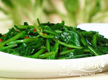 菠菜:菠菜中含有大量的β胡萝卜素和铁,也是维生素B6、叶酸、铁和钾的极佳来源。其中丰富的铁对缺铁性贫血有改善作用,能令人面色红润,光彩照人,因此被推崇为养颜佳品。菠菜叶中含有铬和一种类胰岛素样物质,其作用与胰岛素非常相似,能使血糖保持稳定。丰富的B族维生素含量使其能够防止口角炎、夜盲症等维生素缺乏症的发生。菠菜中含有大量的抗氧化剂如维生素E和硒元素,具有抗衰老、促进细胞增殖作用,既能激活大脑功能,又可增强青春活力,有助于防止大脑的老化,防止老年痴呆症。哈佛大学的一项研究还发现,每周食用2~4次菠菜的中老年人,因摄入了维生素A和胡萝卜素,可降低患视网膜退化的危险,从而保护视力。水萝卜:萝卜所含热量较少,纤维素较多,吃后易产生饱胀感,这些都有助于减肥。萝卜能诱导人体自身产生干扰素,增加机体免疫力,并能抑制癌细胞的生长,对防癌、抗癌有重要作用。萝卜中的芥子油和精纤维可促进胃肠蠕动,有助于体内废物的排出。常吃萝卜可降低血脂、软化血管、稳定血压,预防冠心病、动脉硬化、胆石症等疾病。