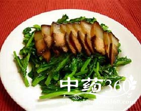 腊肉(生):腊肉中磷、钾、钠的含量丰富,还含有脂肪、蛋白质、碳水化合物等元素。腊肉选用新鲜的带皮五花肉,分割成块,用盐和少量亚硝酸钠或硝酸钠、黑胡椒、丁香、香叶、茴香等香料腌渍,再经风干或熏制而成,具有开胃祛寒、消食等功效。腌制食品中有较多量的硝酸盐,且不可过量食用。芥蓝:芥蓝是叶菜类中含维生素较多的青菜,其中含有有机碱,这使它带有一定的苦味,能刺激人的味觉神经,增进食欲,还可加快胃肠蠕动,有助消化。芥蓝中另一种独特的苦味成分是金鸡纳霜,能抑制过度兴奋的体温中枢,起到消暑解热作用。它还含有大量膳食纤维,能防止便秘。降低胆固醇,软化血管,预防心脏病额功效。红辣椒:辣椒是老百姓餐桌上最常见的一种原料,其营养丰富,口味独特,就餐时能增加饭量,多食可增强体力,改善怕冷、冻伤、血管性头痛等症状。同时辣椒中含有一种物殊物质,能加速新陈代谢,促进荷尔蒙分泌,保健皮肤。富含的维C,可以控制心脏病及冠状动脉硬化,降低胆固醇。含有较多抗氧化物质,可预防癌症及其他慢性疾病。可以使呼吸道畅通,用以治疗咳嗽、感冒。辣椒还能杀抑胃腹内的寄生虫。