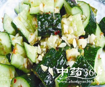 减肥强体:黄瓜中所含的丙醇二酸,可抑制糖类物质转变为脂肪。此外,黄瓜中的纤维素对促进人体肠道内腐败物质的排除,以及降低胆固醇有一定作用,能强身健体。