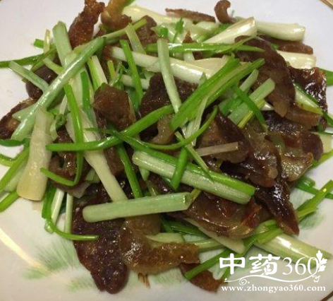 做法:五花腩切成薄片备用;鲮鱼滑以平底锅煎成薄饼后切约1厘米宽条状备用;荞菜洗净切段备用。开锅下油,爆香姜片,下五花腩后,加入荞菜大火翻炒片刻,放入鱼松,下豉油、糖、盐调味,炒匀后勾芡即成。
