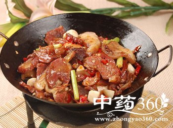 狗肉:狗肉不仅蛋白质含量高,而且蛋白质质量极佳,尤以球蛋白比例大,对增强机体抗病力和细胞活力及器官功能有明显作用。食用狗肉可增强人的体魄,提高消化能力,促进血液循环,改善性功能。狗肉还可用于老年人的虚弱症,如尿溺不尽、四肢厥冷、精神不振等。冬天常吃,可使老年人增强抗寒能力。中医认为狗肉有温肾助阳、壮力气、补血脉的功效。鸡肉:鸡肉肉质细嫩,滋味鲜美,蛋白质含量较高,且易被人体吸收入利用,有增强体力,强壮身体的作用,所含对人体生长发育有重要作用的磷脂类,是中国人膳食结构中脂肪和磷脂的重要来源之一。且鸡的全身都是药,有益五脏,补虚损,补虚健胃、强筋壮骨、活血通络、调月经、止白带等作用。用于虚劳瘦弱、中虚食少、泄泻头晕心悸、月经不调、产后乳少、消渴、水肿、小便数频、遗精、耳聋耳鸣等证。一般人群均可食用,老人,病人,体弱者更宜食用。春笋:春笋味道清淡鲜嫩,营养丰富。含有充足的水分、丰富的植物蛋白以及钙、磷、铁等人体必需的营养成分和微量元素,特别是纤维素含量很高,常食有帮助消化、防止便秘的功能。所以春笋是高蛋白、低脂肪、低淀粉、多粗纤维素的营养美食。现代医学证实,吃笋有滋阴、益血、化痰、消食、利便、明目等功效。猪肉(肥瘦):猪肉含有丰富的优质蛋白质和必需的脂肪酸,并提供血红素(有机铁)和促进铁吸收的半胱氨酸,能改善缺铁性贫血;具有补肾养血,滋阴润燥的功效;但由于猪肉中胆固醇含量偏高,故肥胖人群及血脂较高者不宜多食。辣椒(红、尖、干):辣椒是老百姓餐桌上最常见的一种原料,其营养丰富,口味独特,就餐时能增加饭量,多食可增强体力,改善怕冷、冻伤、血管性头痛等症状。同时辣椒中含有一种物殊物质,能加速新陈代谢,促进荷尔蒙分泌,保健皮肤。富含的维C,可以控制心脏病及冠状动脉硬化,降低胆固醇。含有较多抗氧化物质,可预防癌症及其他慢性疾病。可以使呼吸道畅通,用以治疗咳嗽、感冒。辣椒还能杀抑胃腹内的寄生虫。