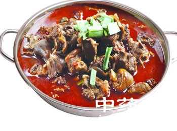 狗肉:狗肉不仅蛋白质含量高,而且蛋白质质量极佳,尤以球蛋白比例大,对增强机体抗病力和细胞活力及器官功能有明显作用。食用狗肉可增强人的体魄,提高消化能力,促进血液循环,改善性功能。狗肉还可用于老年人的虚弱症,如尿溺不尽、四肢厥冷、精神不振等。冬天常吃,可使老年人增强抗寒能力。中医认为狗肉有温肾助阳、壮力气、补血脉的功效。青蒜:青蒜中含有蛋白质、胡萝卜素、维生素B1、B2等营养成分。它的辣味主要来自于其含有的辣素,这种辣素具有醒脾气、消积食的作用。还有良好的杀菌、抑菌作用,能有效预防流感,肠炎等因环境污染引起的疾病。青蒜对于心脑血管有一定的保护作用,可预防血栓的形成,同时还能保护肝脏,诱导肝细胞脱毒酶的活性,可以阻断亚硝胺致癌物质的合成,对预防癌症有一定的作用。辣椒(红、尖、干):辣椒是老百姓餐桌上最常见的一种原料,其营养丰富,口味独特,就餐时能增加饭量,多食可增强体力,改善怕冷、冻伤、血管性头痛等症状。同时辣椒中含有一种物殊物质,能加速新陈代谢,促进荷尔蒙分泌,保健皮肤。富含的维C,可以控制心脏病及冠状动脉硬化,降低胆固醇。含有较多抗氧化物质,可预防癌症及其他慢性疾病。可以使呼吸道畅通,用以治疗咳嗽、感冒。辣椒还能杀抑胃腹内的寄生虫。香菜:香菜中含有许多挥发油,其特殊的香气就是挥发油散发出来的。它能祛除肉类的腥膻味,因此在一些菜肴中加些香菜,即能起到祛腥膻、增味道的独特功效。香菜提取液具有显著的发汗清热透疹的功能,其特殊香味能刺激汗腺分泌,促使机体发汗,透疹。另具和胃调中的功效,是因香菜辛香升散,能促进胃肠蠕动,具有开胃醒脾的作用。