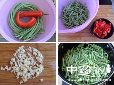 豇豆在焯烫的时候少加一点盐,可保颜色碧绿,必须焯熟。