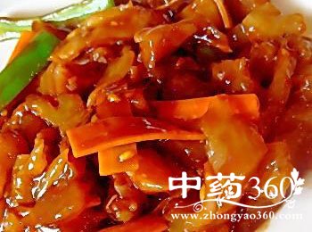 猪蹄筋:猪蹄筋中含在丰富的胶原蛋白质,能增强细胞生理代谢,使皮肤更富有弹性和韧性,延缓皮肤的衰老;有强筋壮骨之功效,对腰膝酸软、身体瘦弱者有很好的食疗作用;有助于青少年生长发育和减缓中老年妇女骨质疏松的速度。玉兰片:玉兰片含有丰富的蛋白质、维生素、粗纤维、碳水化合物以及钙、磷、铁、糖等多种营养物质。而且从我国传统中医的角度看,玉兰片味甘、性平,还可定喘消痰。香菇(干):香菇具有高蛋白、低脂肪、多糖、多种氨基酸和多种维生素的营养特点;香菇中有一种一般蔬菜缺乏的麦淄醇,它可转化为维生素D,促进体内钙的吸收,并可增强人体抵抗疾病的能力。正常人吃香菇能起到防癌作用。癌症患者多吃香菇能抑制肿瘤细胞的生长;香菇食疗对腹壁脂肪较厚的患者,有一定的减肥效果。香菇中含腺瞟吟、胆碱、酪氨酸、氧化酶以及某些核酸物质,能起到降压、降胆固醇、降血脂的作用,又可预防动脉硬化、肝硬化等疾病;香菇多糖能提高辅助性T细胞的活力而增强人体体液免疫功能。大量实践证明,香菇防治癌症的范围广泛,已用于临床治疗。香菇还含有多种维生素、矿物质,对促进人体新陈代谢,提高机体适应力有很大作用;香菇还对糖尿病、肺结核、传染性肝炎、神经炎等起治疗作用,又可用于消化不良、便秘等。鸡肉:鸡肉肉质细嫩,滋味鲜美,蛋白质含量较高,且易被人体吸收入利用,有增强体力,强壮身体的作用,所含对人体生长发育有重要作用的磷脂类,是中国人膳食结构中脂肪和磷脂的重要来源之一。且鸡的全身都是药,有益五脏,补虚损,补虚健胃、强筋壮骨、活血通络、调月经、止白带等作用。用于虚劳瘦弱、中虚食少、泄泻头晕心悸、月经不调、产后乳少、消渴、水肿、小便数频、遗精、耳聋耳鸣等证。一般人群均可食用,老人,病人,体弱者更宜食用。