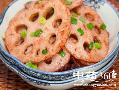 2. 刮去外皮的藕切成薄片,用自来水清洗干净沥干水分,香葱切成末