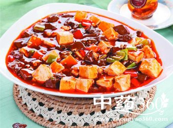 豆腐:豆腐的蛋白质含量丰富,而且豆腐蛋白属完全蛋白,不仅含有人体必需的八种氨基酸,而且比例也接近人体需要,营养价值较高;有降低血脂,保护血管细胞,预防心血管疾病的作用。此外,豆腐对病后调养、减肥、细腻肌肤亦很有好处。猪血:猪血中含有多种微量元素,对营养不良、肾脏疾患、心血管疾病的病后的调养都有益处,可以防治缺铁性贫血,并能有效地预防中老年人患冠心病、动脉硬化等症;猪血还能较好地清除人体内的粉尘和有害金属微粒对人体的损害;猪血不宜食用过多,以免增加体内的胆固醇;凡有病期间忌食。韭菜:韭菜为辛温补阳之品,含有一定量的锌元素,能温补肝肾,因此在药典上有“起阳草”之称,可与现今的“伟哥”媲美。此外,韭菜含有挥发性精油及含硫化合物,具有促进食欲和降低血脂的作用,对高血压、冠心病、高血脂等有一定疗效。含硫化合物还具有一定杀菌消炎的作用。韭菜含有较多的膳食纤维,能促进胃肠蠕动,可有效预防习惯性便秘和肠癌。这些膳食纤维还可以把消化道中的头发、沙砾、金属屑甚至是针包裹起来,随大便排出体外,有“洗肠草”之称。同时韭菜还有温中行气、散血解毒、保暖、健胃的功效。辣椒(青、尖):辣椒是老百姓餐桌上最常见的一种原料,其营养丰富,口味独特,就餐时能增加饭量,多食可增强体力,改善怕冷、冻伤、血管性头痛等症状。同时辣椒中含有一种物殊物质,能加速新陈代谢,促进荷尔蒙分泌,保健皮肤。富含的维C,可以控制心脏病及冠状动脉硬化,降低胆固醇。含有较多抗氧化物质,可预防癌症及其他慢性疾病。可以使呼吸道畅通,用以治疗咳嗽、感冒。辣椒还能杀抑胃腹内的寄生虫。